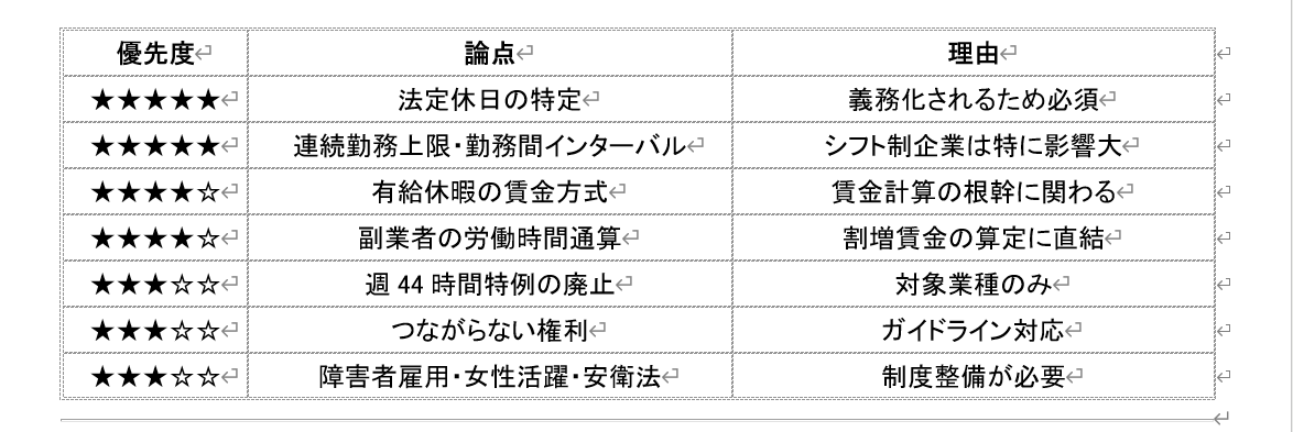 2026年4月改正 「2026年4月改正に向けて就業規則で見直すべき主要論点一覧」他