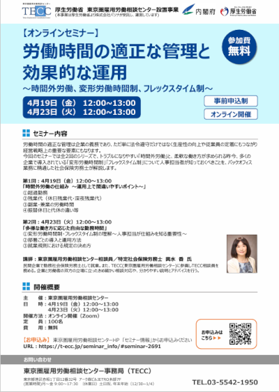 【募集中】【TECC無料セミナー】「労働時間の適正な管理と効果的な運用」